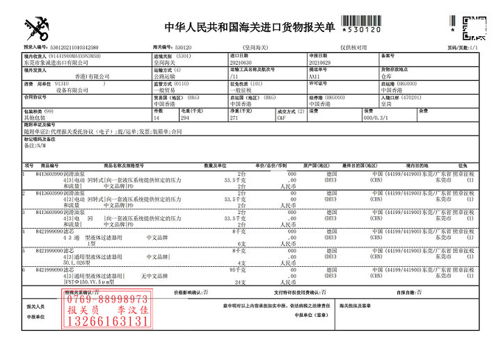 四,德國潤滑油泵退運及香港進口報關(guān)流程: